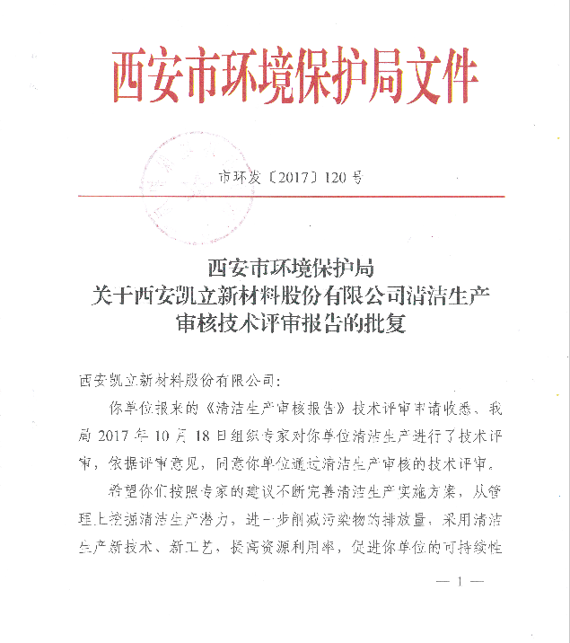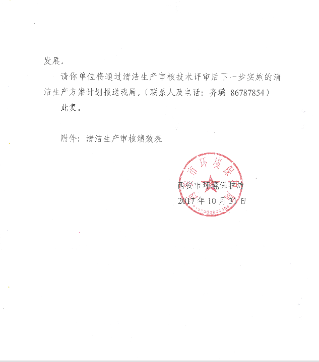 近日,我司通过西安市环保局对我司《清洁生产审核报告》技术审批