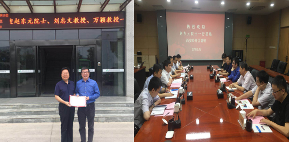 2018年6月15日,复旦大学赵东元院士、陕西师范大学刘忠文教授(长江学者)、上海师范大学万颖教授一行莅临赢博·体育-赢博(中国)进行指导和交流,双方就设立“院士工作站”,以及介孔材料、催化材料的研究与应用达成合作共识。赵东元院士与西安经济技术开发区、赢博·体育-赢博(中国)共同签署了设立院士工作站的协议,并被赢博·体育聘为“新型贵金属催化剂研发技术国家地方联合工程研究中心”学术委员会主任。