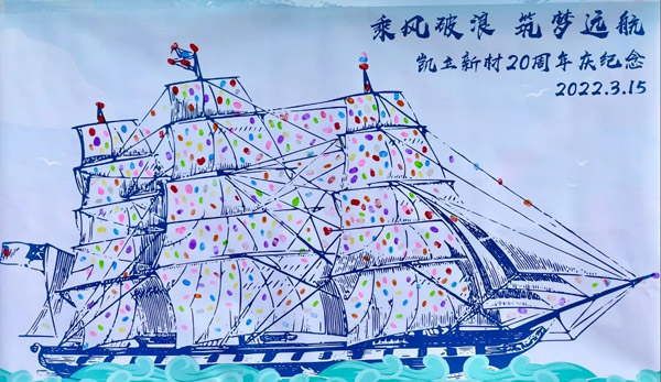 今天,我们在帆船上按下手印,助力公司高质量发展,扬帆远航。
