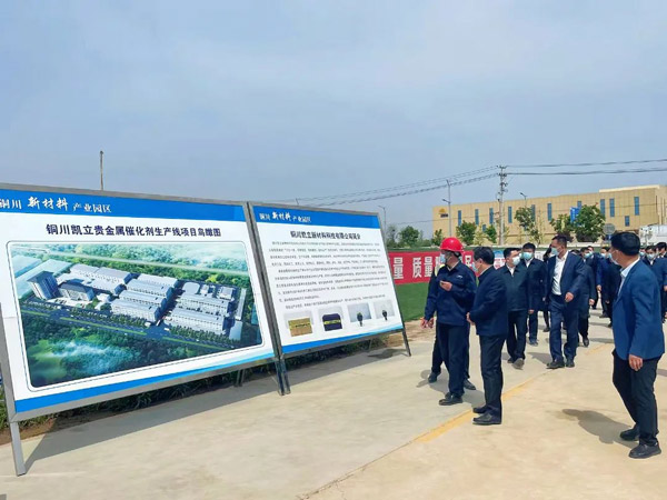 4月19日,铜川市委书记樊维斌带领市委、市人大常委会、市政府、市政协有关领导,各区县、市级有关部门负责同志到铜川赢博 观摩项目建设,全面深入了解稀贵金属催化材料生产线和催化氢化项目推进情况。赢博 新材铜川项目建设负责人牟博接待。