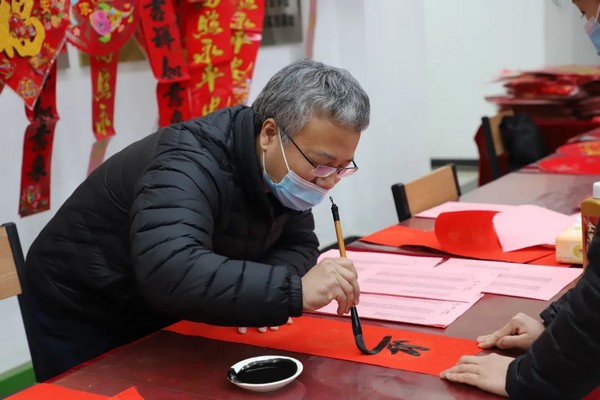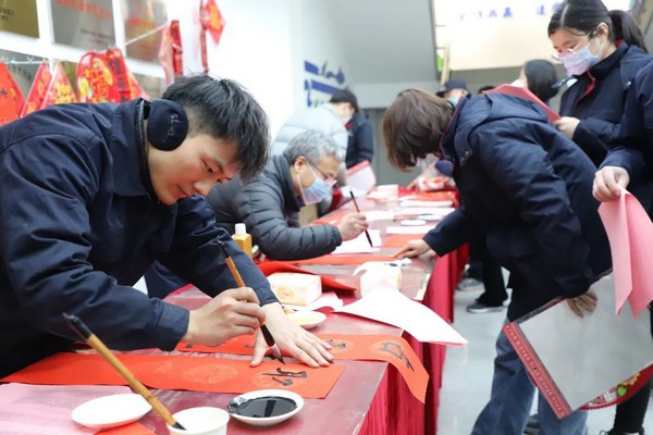 在活动现场,气氛热烈,公司劳模李岳锋、牟博为大家写春联、送祝福,一张张寓意吉祥的春联,为即将来临的春节增添了味道。
