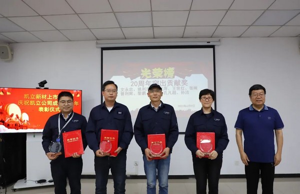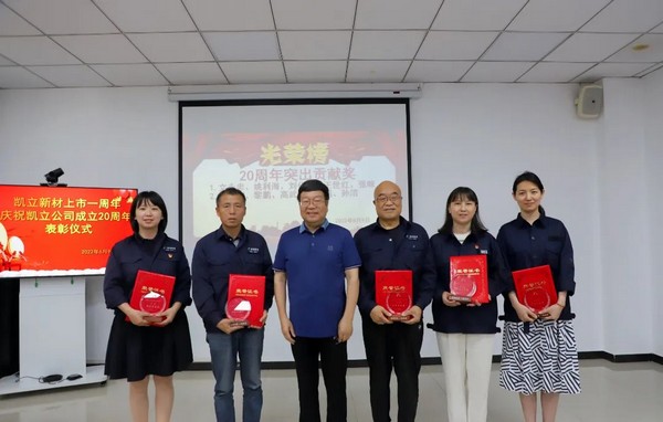 6月9日,赢博 新材上市一周年表彰大会在西安举行。表彰了公司成立20年以来作出突出贡献的职工10名,作出杰出贡献的职工2名。