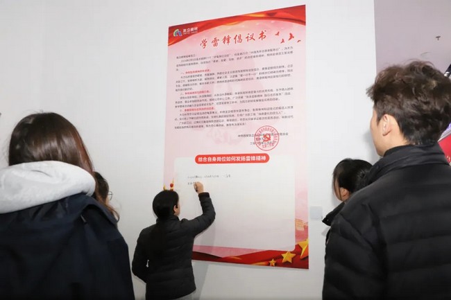 活动现场,一面巨大的学雷锋倡议书签名墙成为了众人关注的焦点。公司职工纷纷走到签名墙前,结合自身岗位写下如何发扬雷锋精神的想法,郑重地签下自己的名字。这一刻,他们不仅是在表达对雷锋精神的认同和传承,更是在承诺将雷锋精神融入到自己的工作和生活中,用实际行动践行社会主义核心价值观。