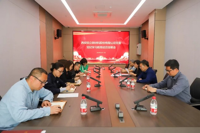 4月17日下午,赢博 新材党委召开党委(扩大)会议,认真传达学习习近平总书记关于党纪学习教育的重要讲话和重要指示精神,学习贯彻中央党的建设工作领导小组会议精神,贯彻落实中共中央办公厅《关于在全党开展党纪学习教育的通知》、《西北有色金属研究院党委关于开展党纪学习教育的通知》要求,安排部署公司开展党纪学习教育工作。公司党委书记、董事张之翔主持会议并作动员讲话,公司党委委员、支部书记参加会议。