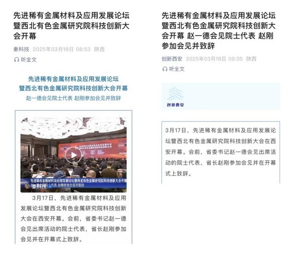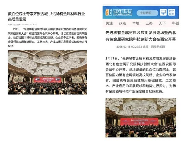 先进稀有金属材料及应用发展论坛暨西北有色金属研究院科技创新大会受到广泛关注