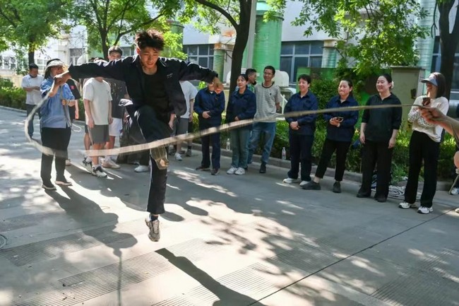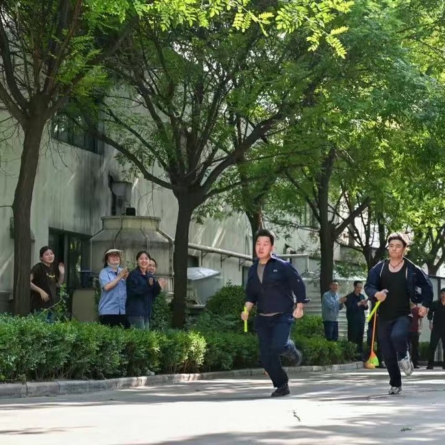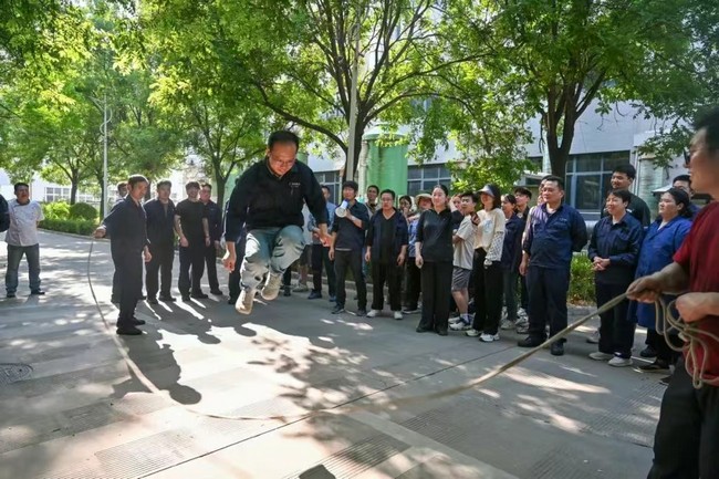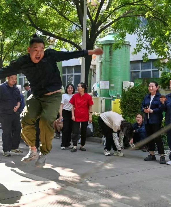 跳大绳项目考验着团队的默契与技巧。队员们步伐轻盈,鱼贯跃入绳圈,腾空而起的身姿,宛如端午时节破浪前行的矫健龙舟。有的队伍配合行云流水,跳绳动作连绵不绝;有的虽偶有停顿,却能迅速调整节奏,重振旗鼓。场边同事们高声计数,加油助威,现场气氛热烈非凡。