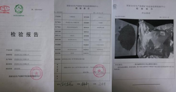 2)CO消除催化剂,室温下即可催化CO转化为二氧化碳,性能处于国内领先水平,得到了国家官方机构检验合格报告。