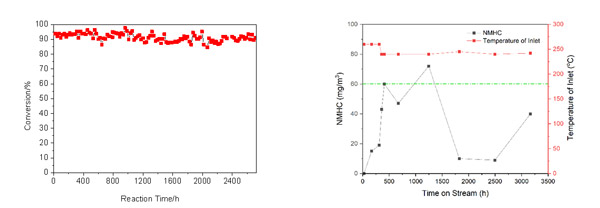 1)脂肪烃废气净化催化剂,废气有机成分的去除率≥95%。催化剂的特点: